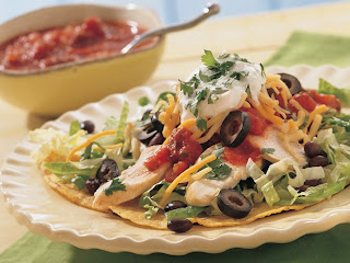 Top tostada shells with remaining ingredients. Serve with additional salsa or your favorite dressing if desired.
